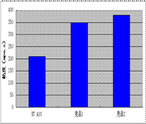 使用競(jìng)品1和2制備的酞菁藍(lán)色漿4 星期后出現(xiàn)沉淀,而HT A10制備的色漿4 星期后仍沒(méi)有沉淀。HT A10制備的色漿冷熱循環(huán)后的粒徑變化為5 nm,競(jìng)品1和2制備的色漿粒徑變化分別為11 nm和9 nm。色漿熱存放實(shí)驗(yàn)和冷熱循環(huán)實(shí)驗(yàn)證明HT A10對(duì)酞菁藍(lán)穩(wěn)定作用優(yōu)于競(jìng)品1和2。