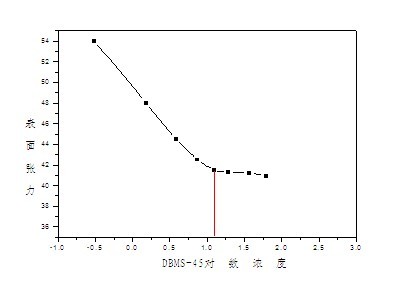 HT DBMS-45表面張力測試,是在25℃及以下濃度水溶液中測得的,結果如下: